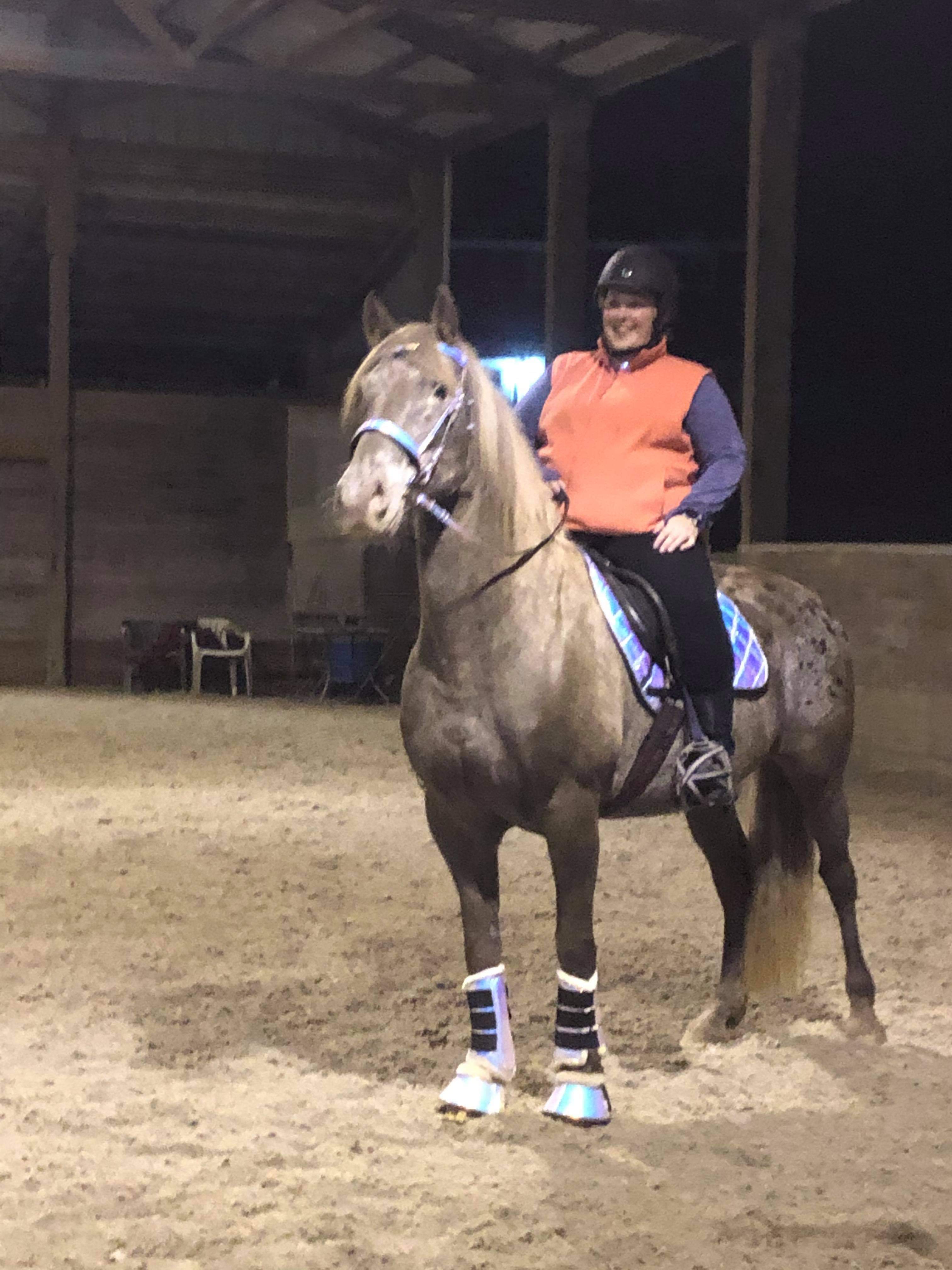 Riding in the covered arena, which I try to avoid unless it's been watered, which it now has!