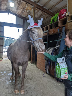 She actually was sweaty after this ride, which was significant considering we only walked AND it was cold out. But we did do a slow 3 miles over 1 hour, just about, which is the longest she's worked since rehab began.
